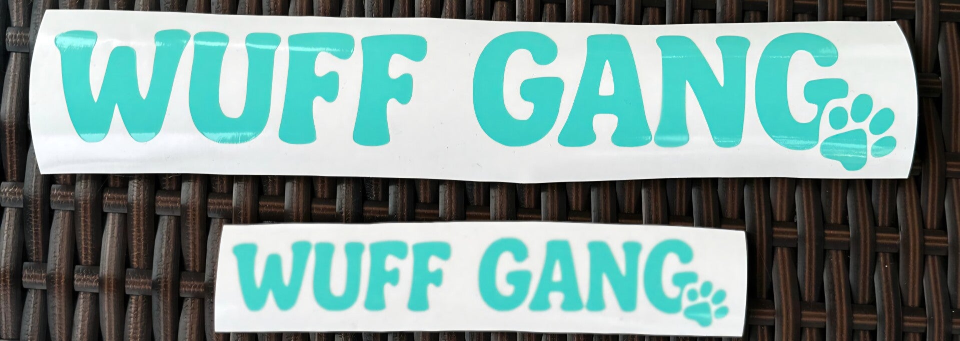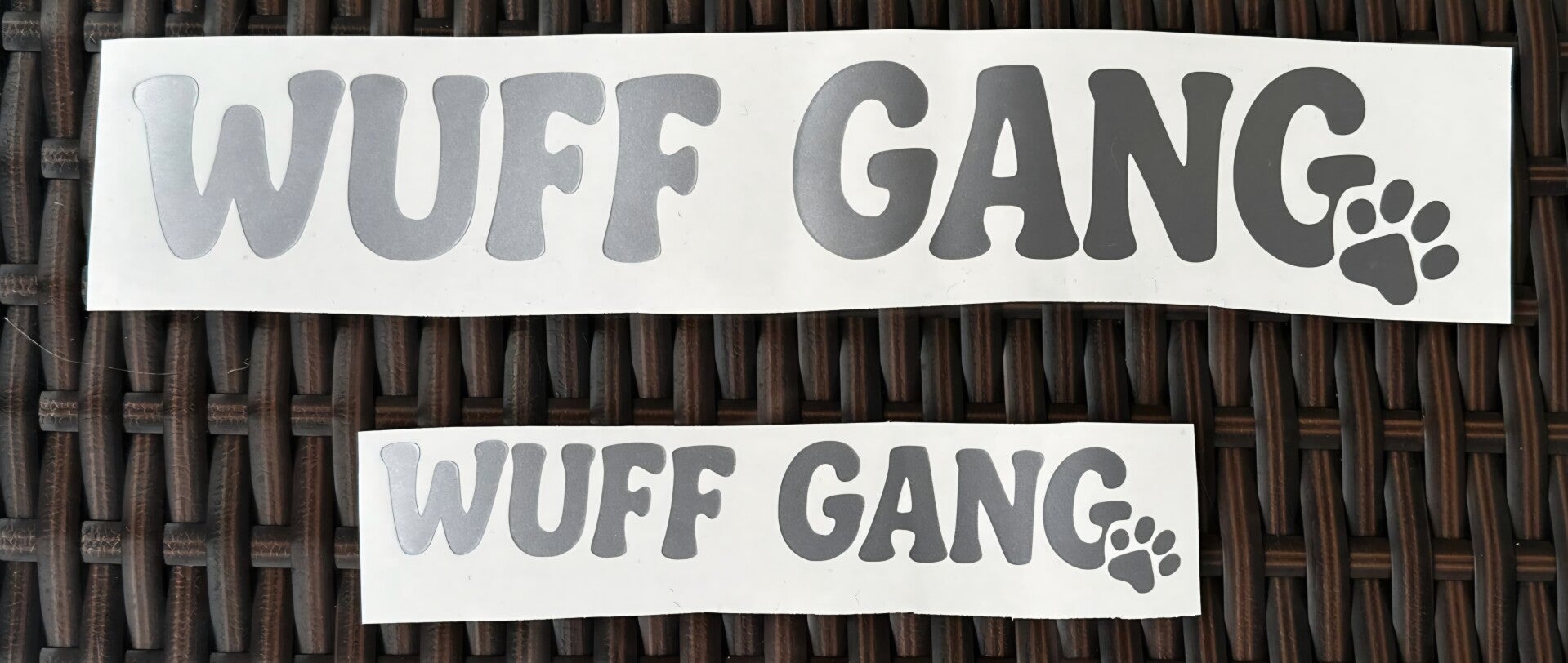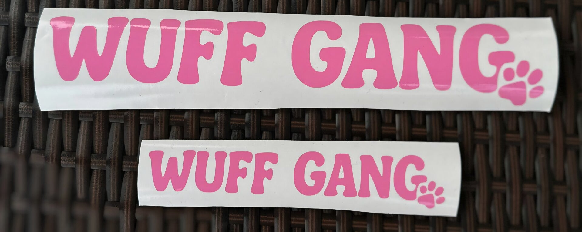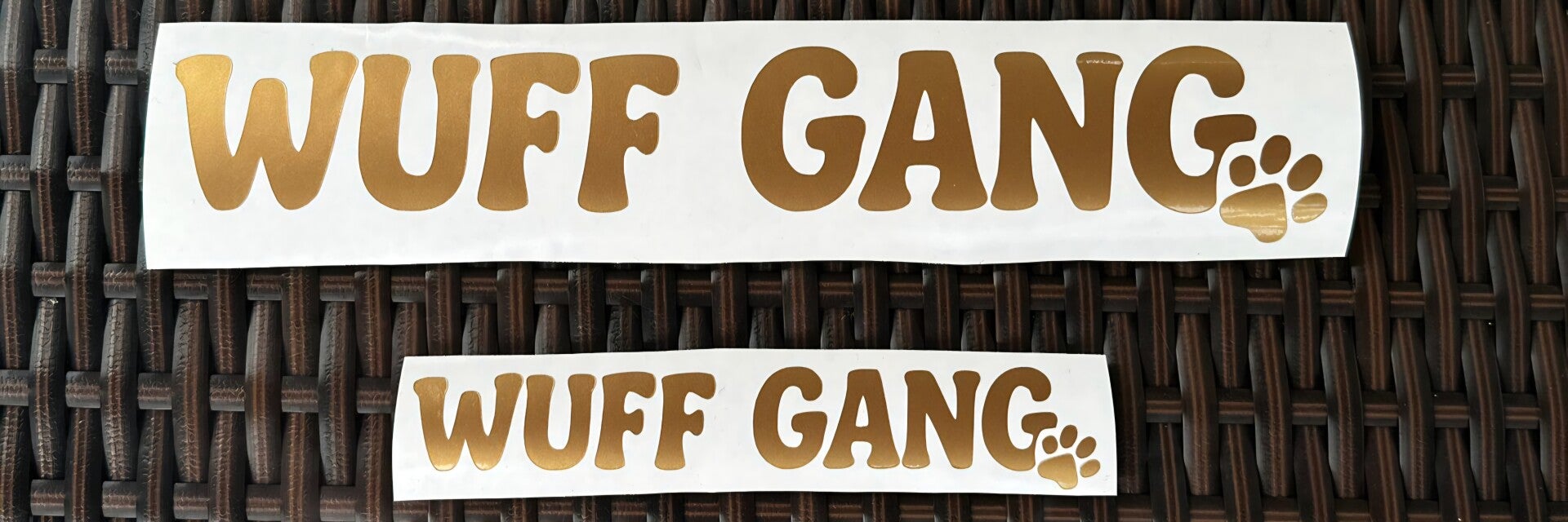 Verleihe deinem Alltag einen Hauch von Wuff Gang mit unseren exklusiven Logo-Stickern für z.B. dein Auto.