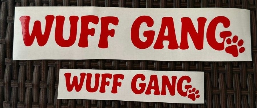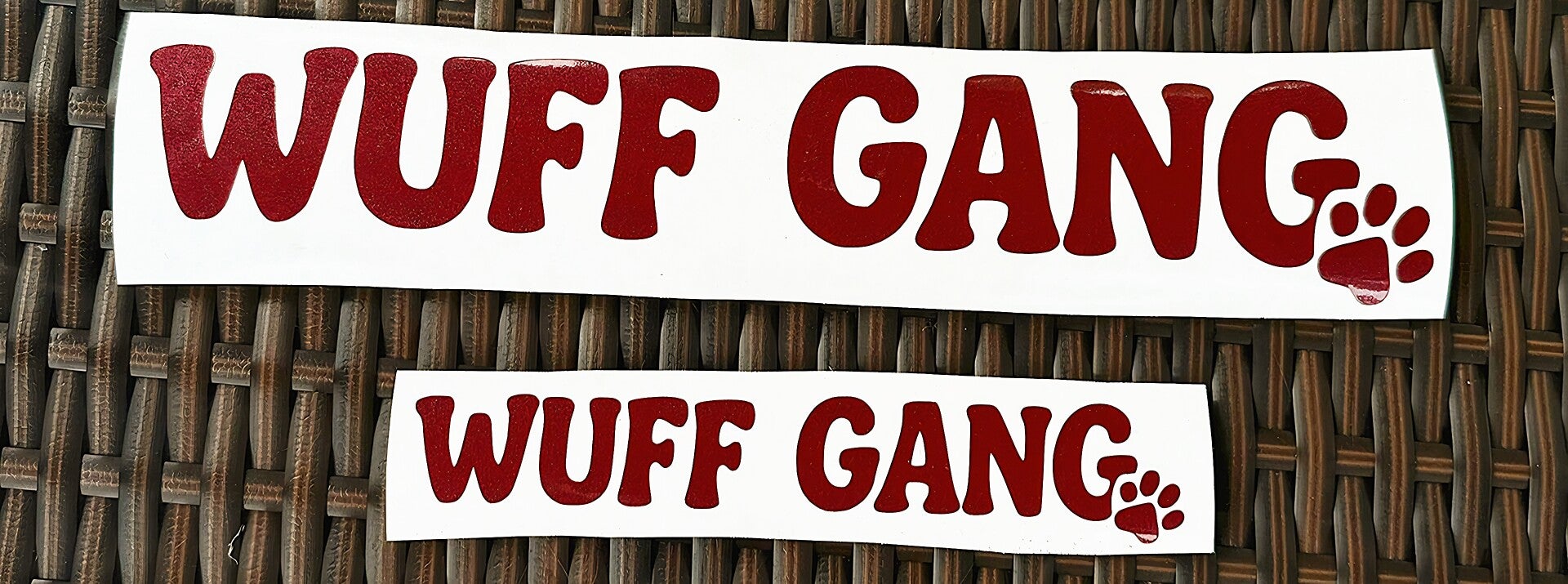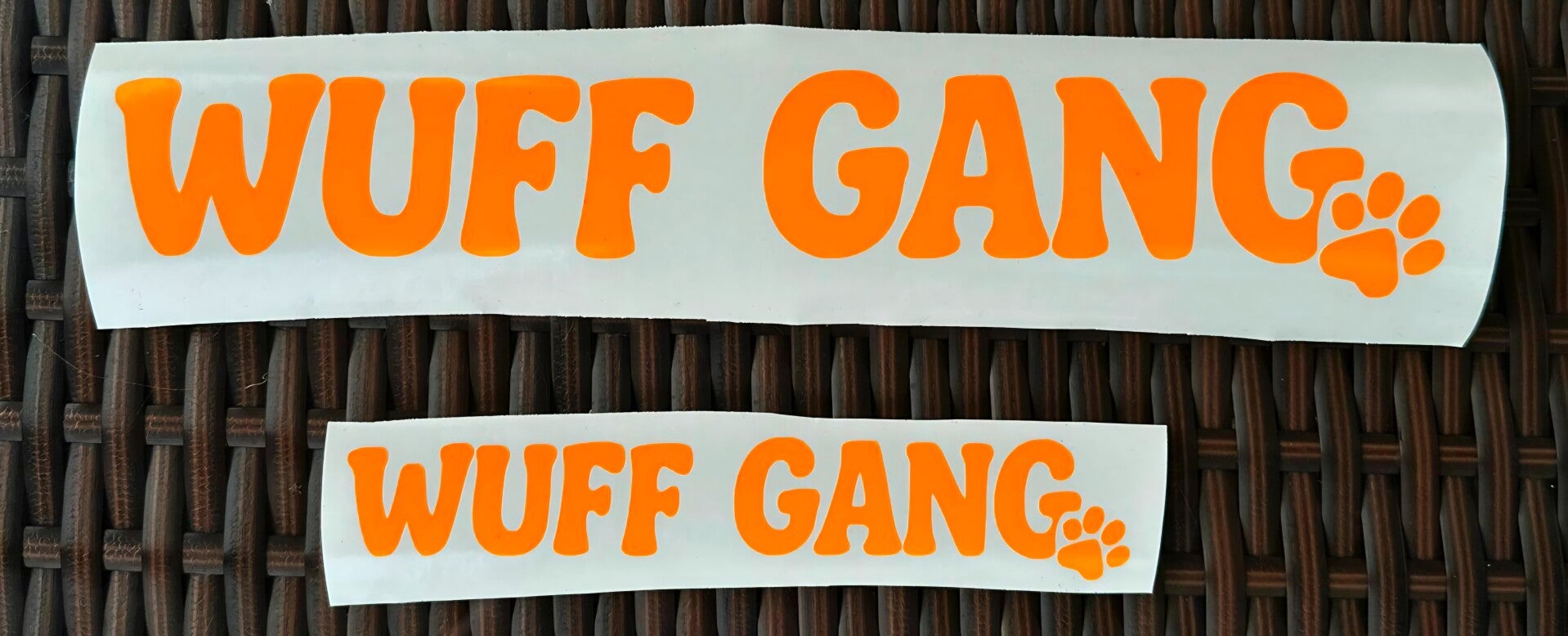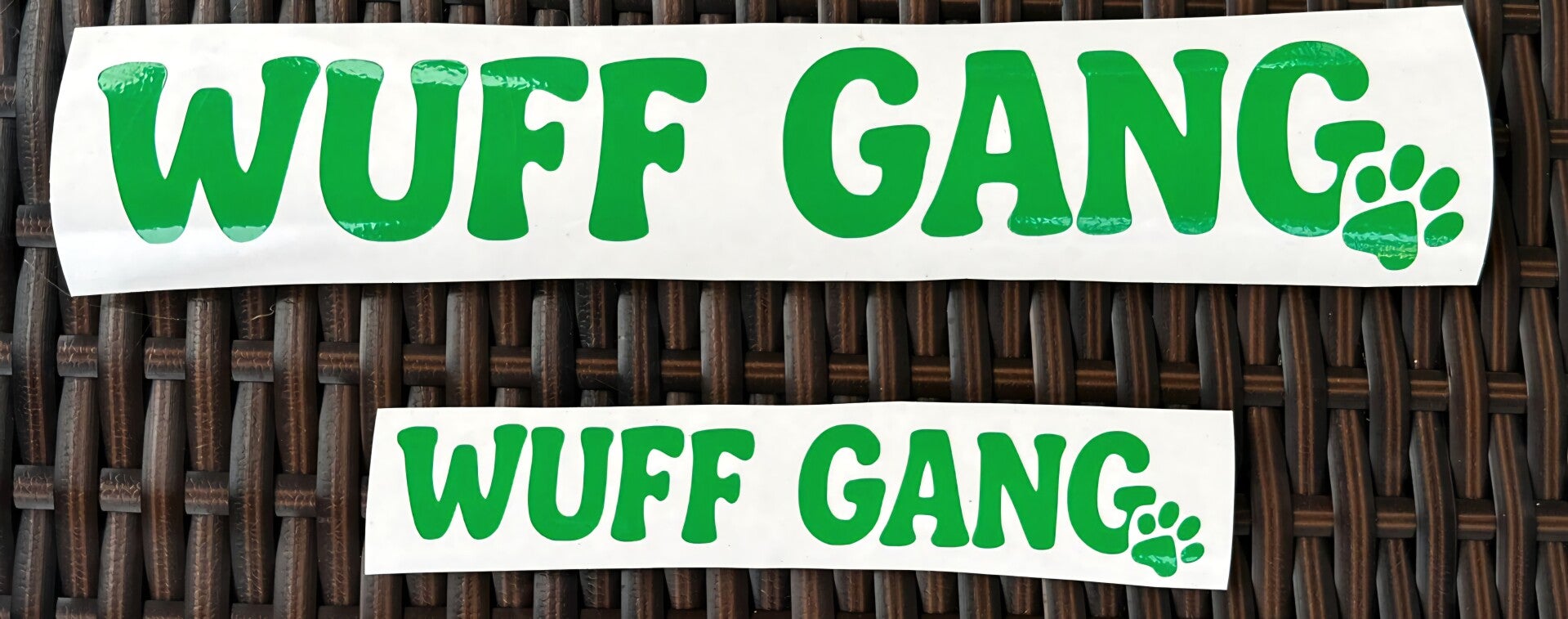 Verleihe deinem Alltag einen Hauch von Wuff Gang mit unseren exklusiven Logo-Stickern für z.B. dein Auto.